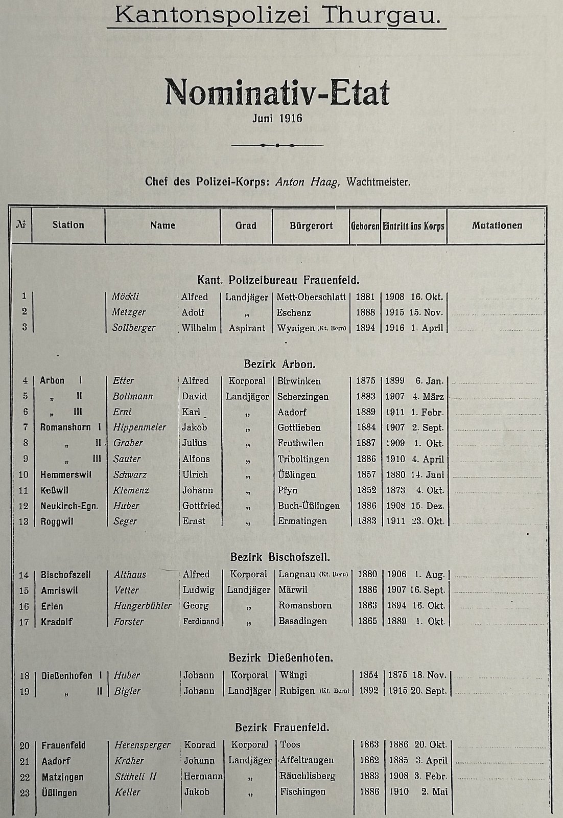 Nominativ-Etat von 1916