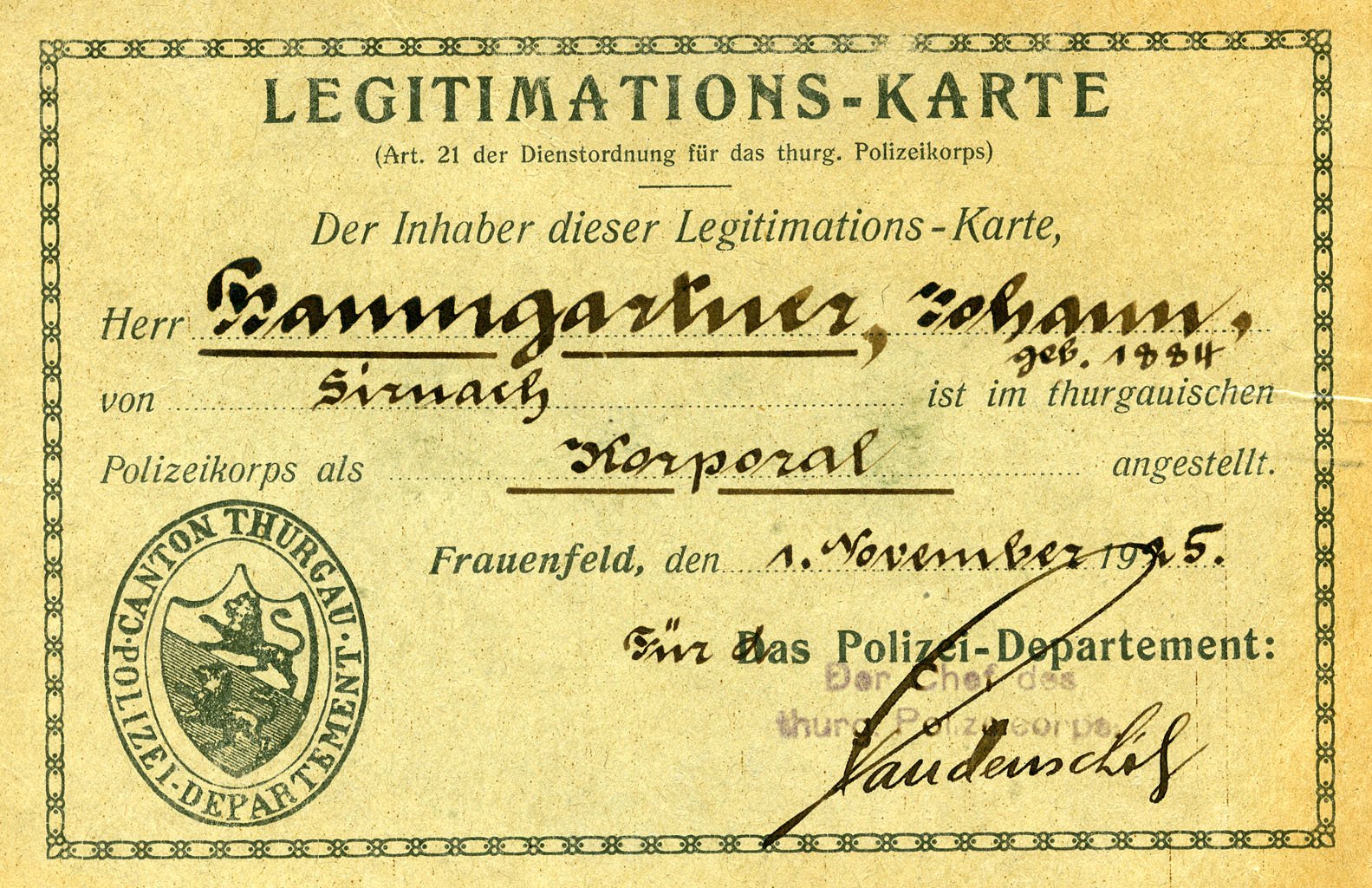 Legitimationskarte 1925